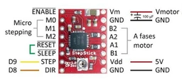 این ماژول دارای تراشه  A4988  بوده که به تنهایی یک استپر موتور کامل می باشد. این ماژول قادر می باشد استپرموتورهای دوقطبی در انواع گام های مختلف تا ولتاژ 35 ولت و جریان 2 آمپر را راه اندازی نماید.